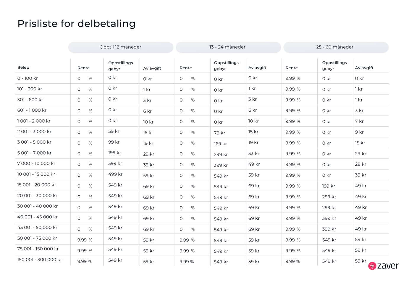 Handle nå og betal senere med Zaver. Du kan velge å betale umiddelbart via bankoverføring, betale senere med en 14-dagers faktura eller dele opp betalingen.