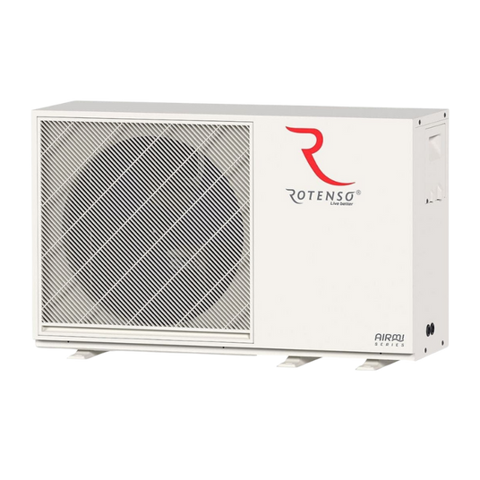 Rotenso 8kW Airmi Paket Monoblock är en trygg och energieffektiv helhetslösning för villor med måttligt värmebehov. Med hög prestanda, smart styrning och komplett paket med bufferttank, varmvattenberedare och nödvändiga installationstillbehör, får du en färdig lösning för både värme och varmvatten.